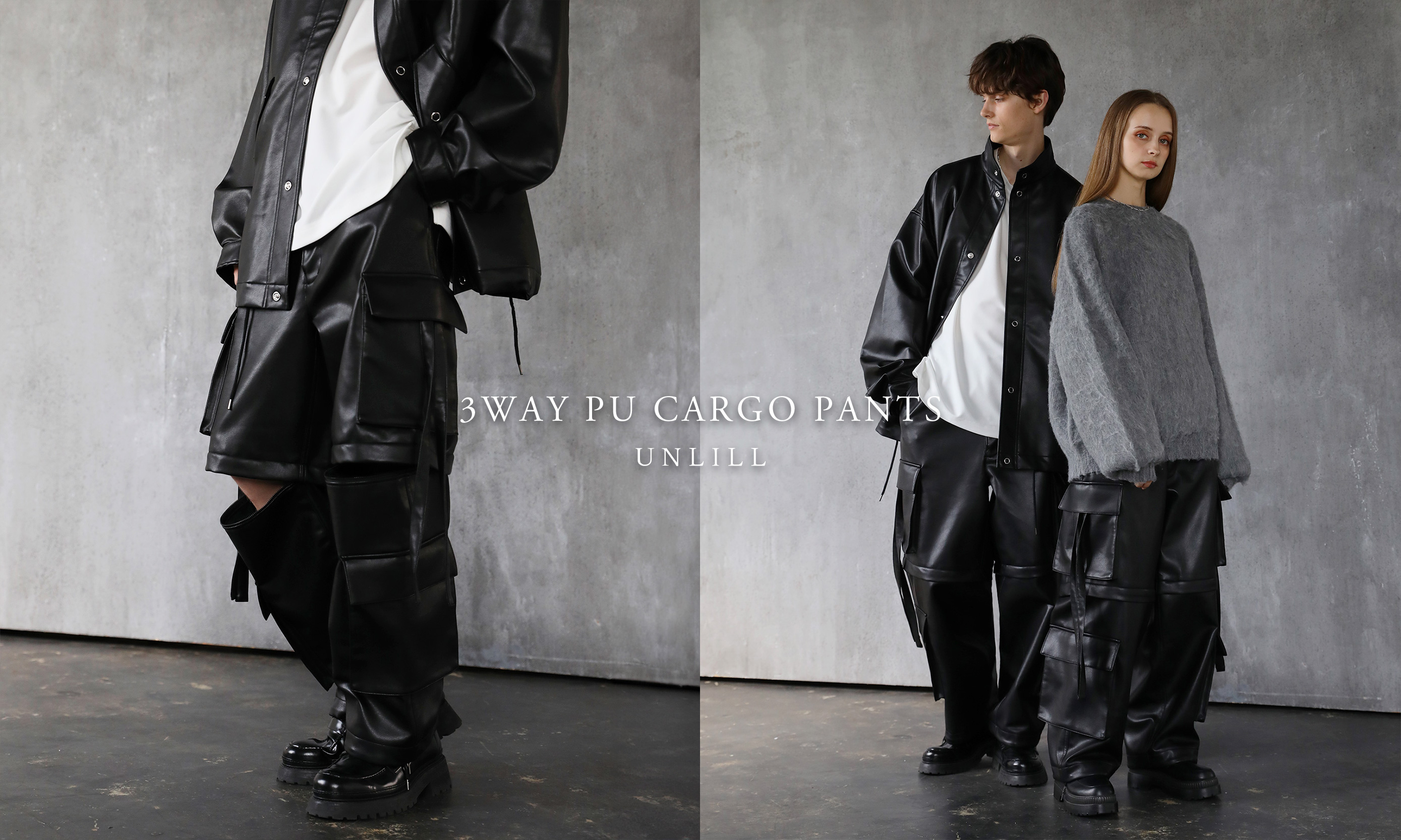 合成皮革3wayカーゴパンツ