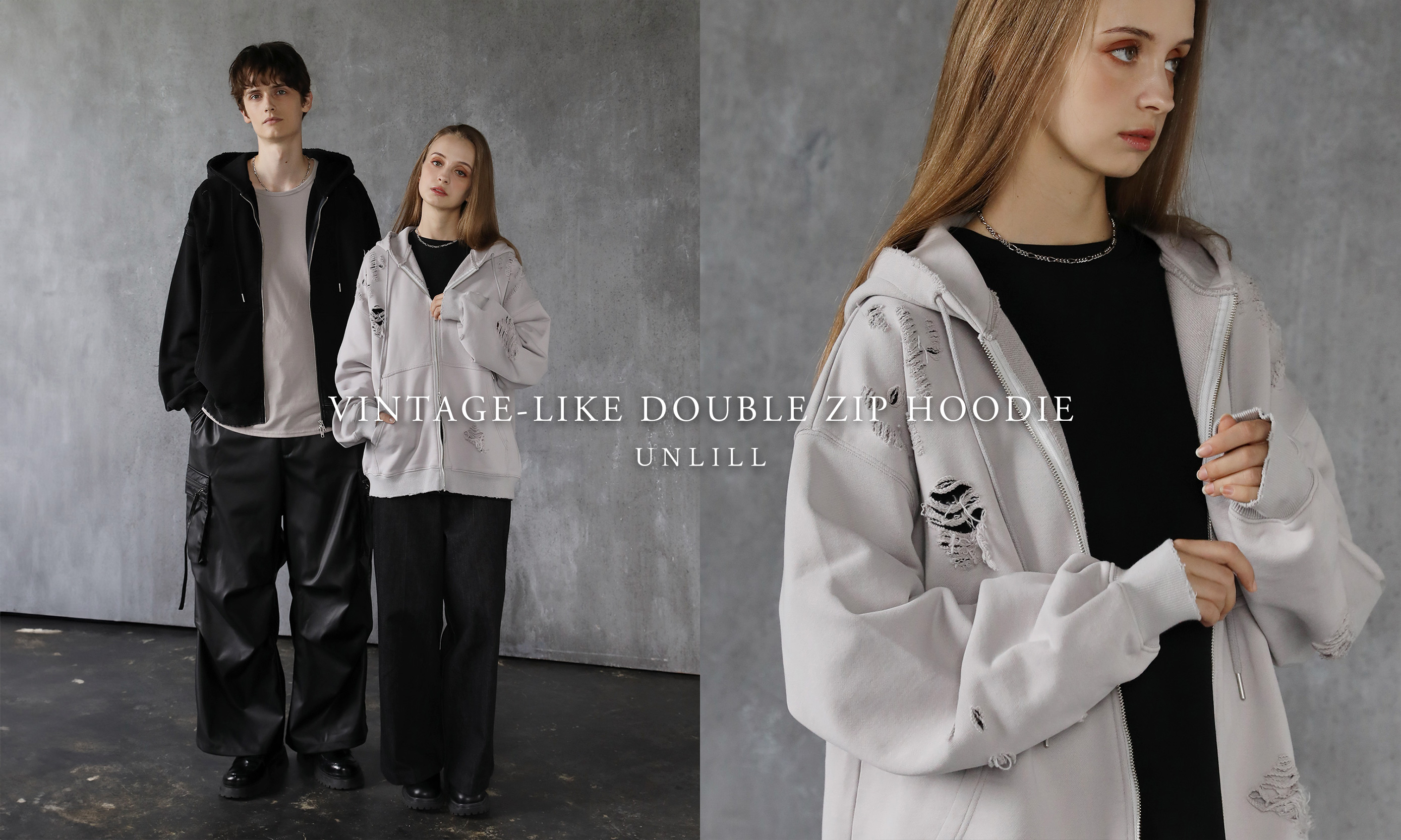 ヴィンテージライクダブルジップフーディ